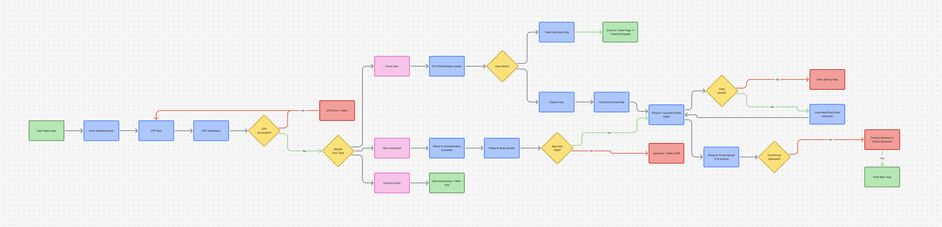 Instead of personas, I mapped user states based on verification status, existing data availability, intent (explore vs attend an event)