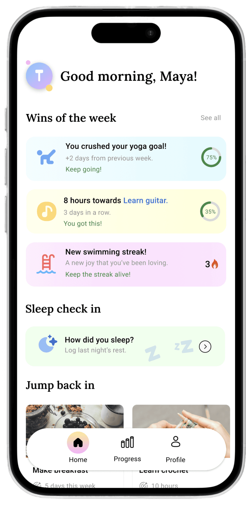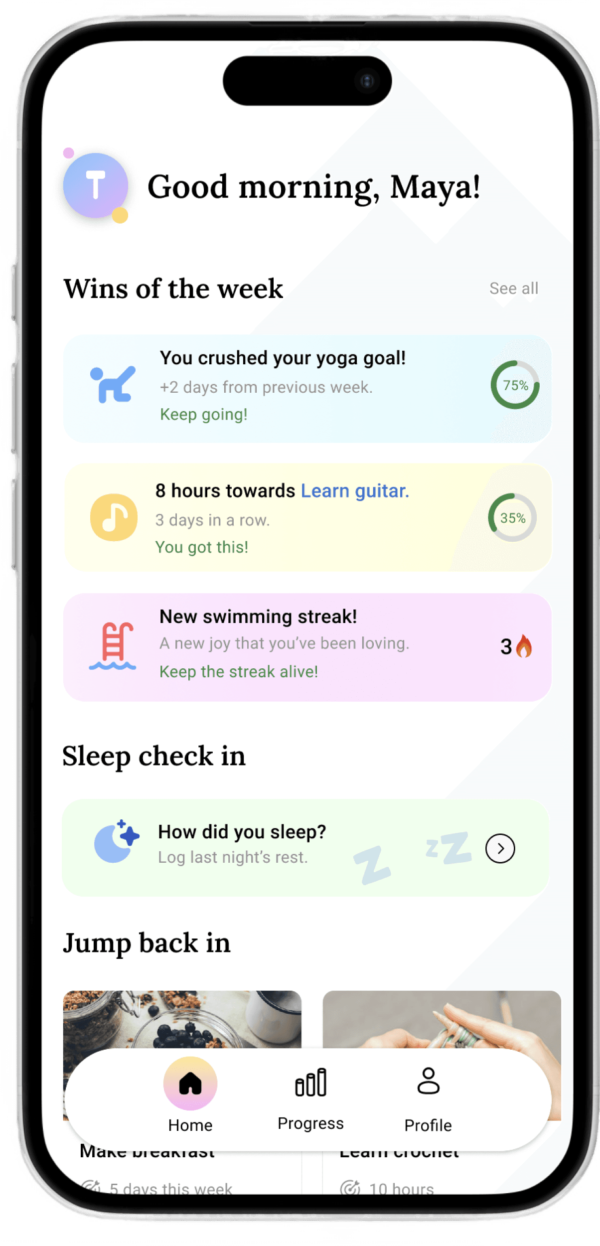 Tomo helps redirect time toward meaningful, real world activities and goals with autonomy.